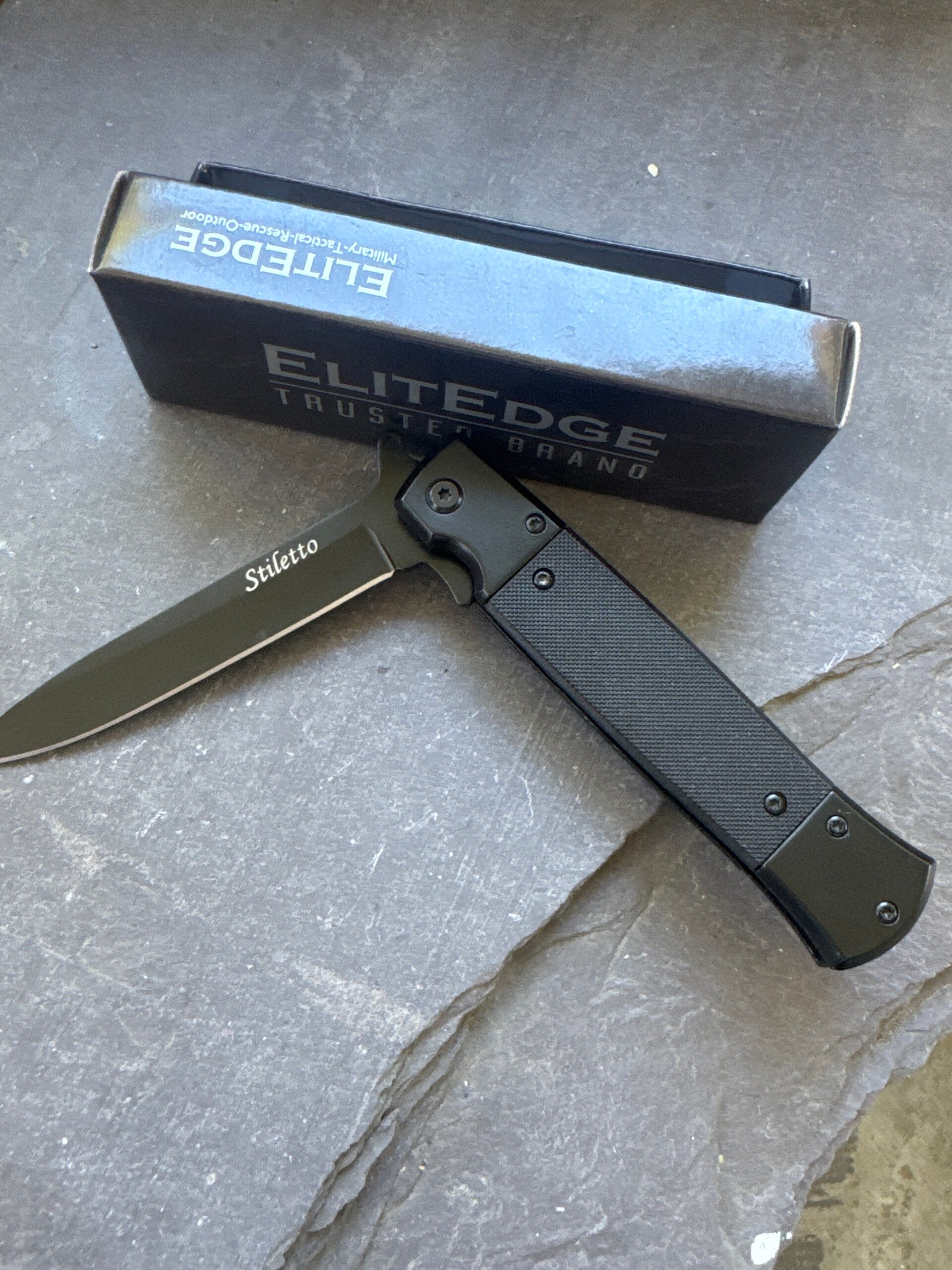Stiletto 420c stainless steel, deep carry pocket clip, spring assisted, made in china,new with blemish (light scratch on the back)
